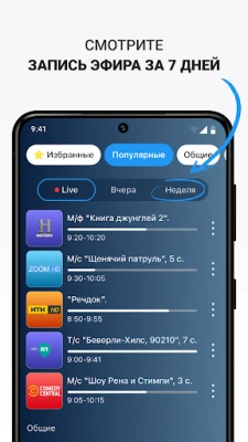 - Смотрите ваши любимые телеканалы в записи 7 дней;