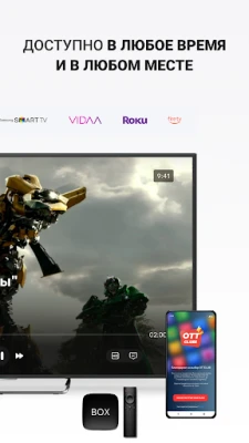 Установите приложение OTTCLUB и смотрите самые популярные ТВ-каналы, любимые фильмы, сериалы, мультфильмы и телепередачи. После установки приложения, Вам будет доступен тестовый период на 3 дня.