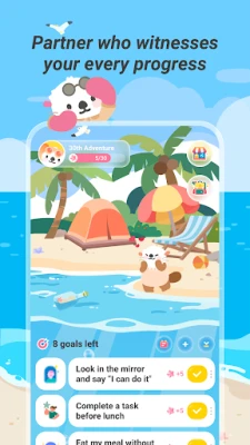 🌊 Adventure With Your Fuzzy Pal: Dive into Adventure Mode with your self-care pet! Explore sunlit coves, quiet tide pools, and vibrant reefs—unlock new, whimsical areas as you stay consistent with your routine. As you grow, your otter’s world expands too: discover hidden spots, collect cute mementos, and watch your little island thrive right alongside you. It’s self-care with wonder—no grind, just gentle, otter-approved exploration.