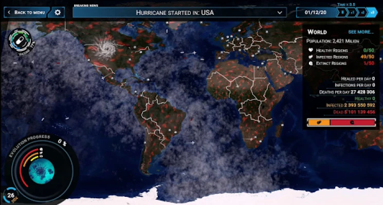 Choose a country you want to start your infection in and begin your pandemic. Gain evolution points and upgrade your disease's symptoms, transmission routes and resistance to external factors.