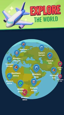 - TRAVEL THE WORLD: The game includes a fully interactable 3D World Globe with over 60 different destinations to visit! Each region will provide you with a different reward in Coins or Resources, so explore the world to find the best destinations for your situation!