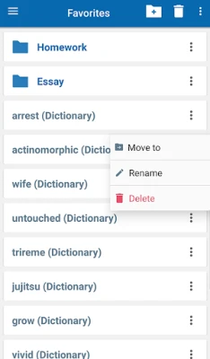 • ‘Favorites’ feature to create custom folders with lists of words from the extensive library