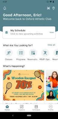 - Account management - Facility schedules - Push notifications - Facility happenings