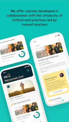 The Oxford Mindfulness app is designed for adults, helping to develop and maintain a mindfulness practice for personal well-being. Through the app you can; access mindfulness via a large range of practices and join live daily mindfulness sessions, complete self-paced introductory courses and access resources including up-to-date information and research from the field.