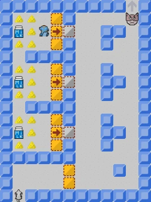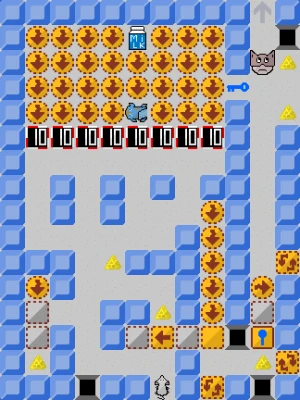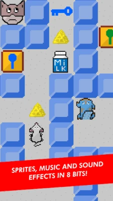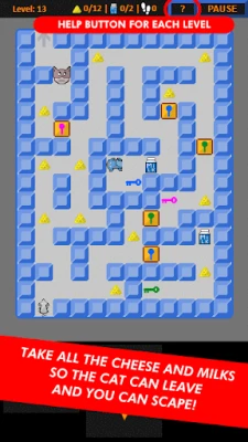 Help Tikus escape from the maze through 61 levels. The cat blocks the exit of the level. In order for him to leave and advance to the next level, you must bribe him by collecting all the milks, and eating the cheeses to keep up the energy. But be careful not to get caught by the raccoon!