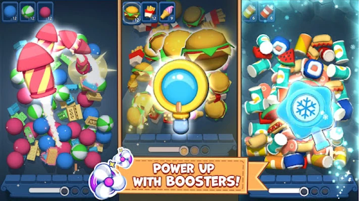Challenging Match 3D Gameplay: Tap on three identical objects and pack them up until you reach your goal.