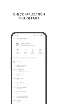 Package Manager is simple application tool which helps to get details about your device's application with some useful management operations.