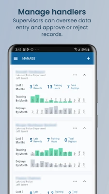 Free accounts are available for K9 trainers and supervisors. Trainers can create training events and exercises for handlers with features like optional event attendance and detailed training scenarios. They can also add training comments to each handler's record. Supervisors can review all training and deployment entries and approve or reject records as appropriate. Both supervisors and trainers have full access to PACKTRACK's detailed reporting system to find the information and statistics they need.