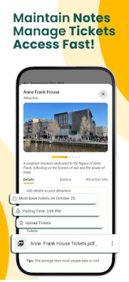 Keep all your travel documents organised and accessible in one secure place. Upload and store important papers, booking confirmations, and travel documents. Access everything offline, ensuring you have critical information when you need it most.