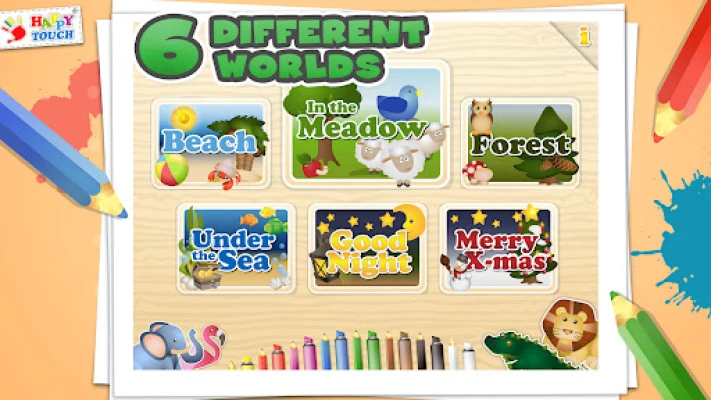Many different animals are waiting for you. Find your artistic side and let your creativity run wild in the HAPPY TOUCH® coloring book app!