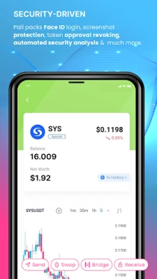 • STATE-OF-THE-ART SECURITY: Your security is our top priority. Pali is equipped with robust security features including Face ID login, screenshot protection, and the ability to revoke token approvals. Moreover, our token security analysis is powered by the Go Plus Security API, offering real-time insights for informed transactions.