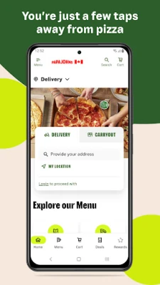 • We’ve made ordering even easier! Download the new official Papa John’s Pizza app and order your favourite pizza, sides and drinks for delivery or takeaway.