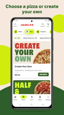 • Enjoy exclusive in-app deals, earn Papa Rewards points when you order and redeem them for free pizza and sides.
