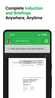 This mobile application allows Construction Site Management to load Safe Systems of Work, Briefing Documents or Corporate Literature onto the platform, share it with the project teams out in the field for the recording of HSE briefings digitally and in real-time.