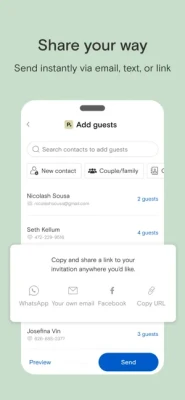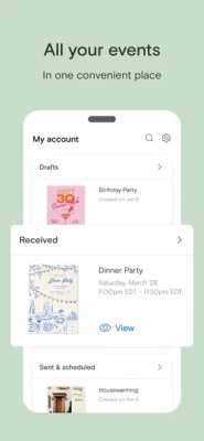 Get everyone together with our online invitation maker and event management platform. Choose between classic stationery-inspired Cards or textable event page Flyer invites, customize everything in minutes, send your way (email, text, or Shareable Link), and track RSVPs all in the app. No ads, ever!