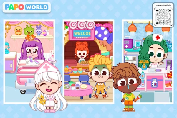 Mini-Game Challenges: Papo City: Hospital now treats ten different conditions, including fracture healing, allergy relief, nasal congestion clearing, toothache care, dry eye moisturizing, stomach ache healing, wound processing, acne care, sprain recovery, and cold relief. Completing mini-games helps to level up and earn rich rewards!