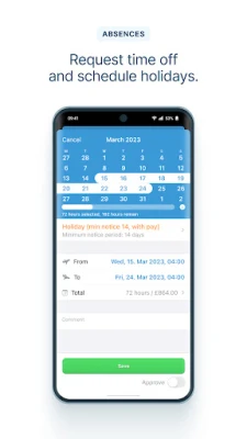 Remote employees can effortlessly clock in/out with their mobile device using a built in gps-tracker. Employees can easily check their schedules, absences and holiday leaves.