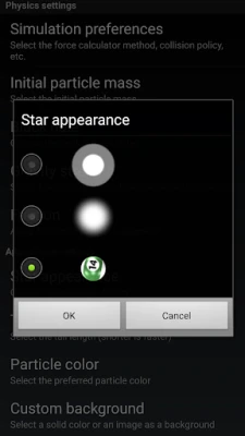- Collision policies: physically realistic elastic collisions, mergers or no collisions at all.