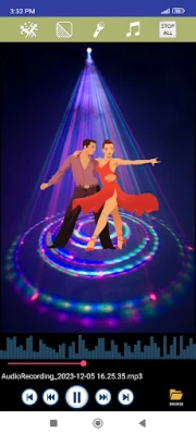 This app allows you to have fun with Disco Lightning with different categories like Dancing girl couple teddy bear and monkey with variety of color background effects. With this app you can easily select your favorite track from the phone library and play with different dancing character and you can change dancing character background according to your choice. Musical Flash Lights Effects App has variety of background categories like Disco light color background disco floor splash and No light.