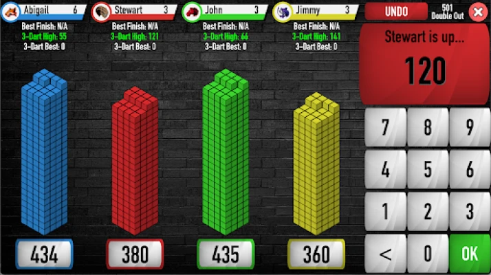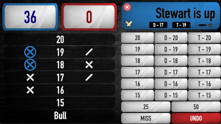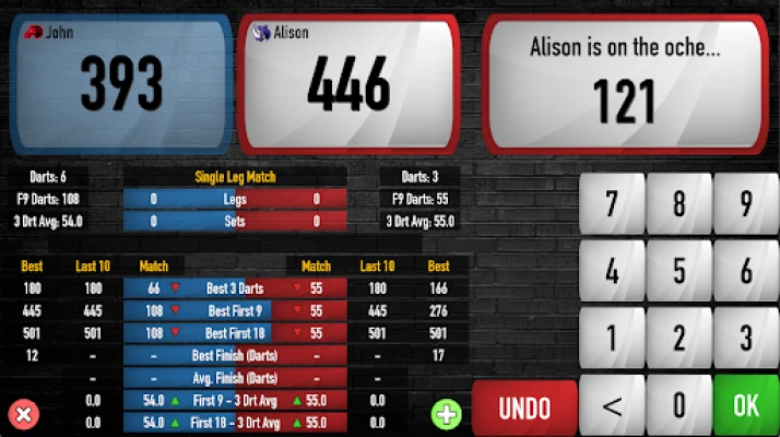 If Party Mode is turned on, after each Party game points are allocated to each player based on where they finished. A leaderboard is then stored so you can play loads of games and keep a running score. Who's going to be your Darts Night Champion!