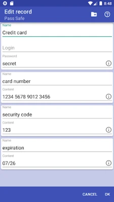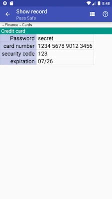 Having trouble to remember all your passwords, usernames, accounts, account numbers, customer ids, security codes, identifiers, pins? Pass Safe can be used to store all your passwords, user names, accounts etc. All you need to know to have access is one master password. Your data is stored encrypted (AES-256 cypher is used) on your device only.