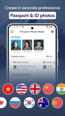 π Supports 100+ country-specific photo templates (US, UK, EU, Japan, Vietnam, etc.)
