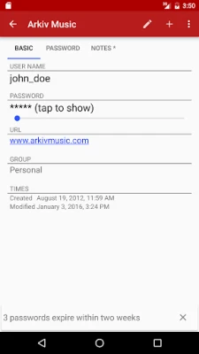 PasswdSafe is a port of the Password Safe (http://pwsafe.org) application to Android. Password files can be synced from cloud services using the companion PasswdSafe Sync app. YubiKey NEO tokens are supported for two-factor authentication. File passwords can be saved on devices with a fingerprint scanner and Android 6.0 or higher.