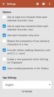 In the settings, you can individually specify which characters are included in each character class and in what form the characters are used for your password. Additionally, it is possible to save your configurations as profiles.