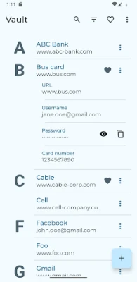 A simple, no frills, password manager to store your passwords. The default data template includes description, website, username and password, but you can add additional fields to store customized data for each entry.