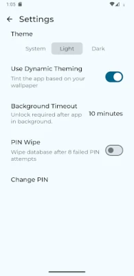 Additionally the data can be synced to Google Drive and shared automatically across multiple devices. Please note that for devices to share data they must all use the same main passphrase, which you specify during the setup phase. This passphrase cannot be changed once set.