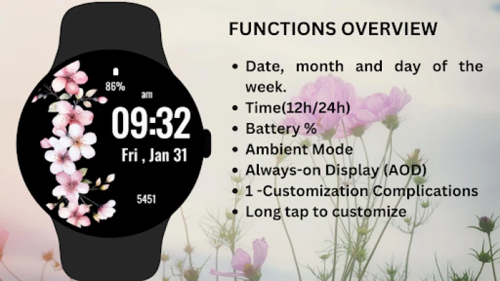 Celebrate the beauty of nature with the Pastel Blossom Watch Face, adding a touch of floral elegance to your Wear OS device.
