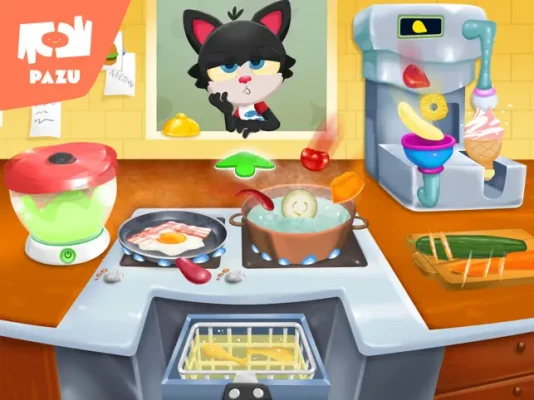 Cook, Fry, cut, and bake crazy delicious food of all kinds: Pasta, Burgers, Hot dogs, Chicken, Pizza, and many more. Time to get busy in the restaurant with Paw Kitchen's new addictive cooking game for kids.