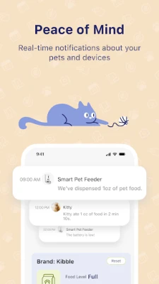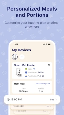 Peace of Mind Remotely feed your pet anytime, anywhere. Customize their feeding schedules and monitor their meals in real-time. Our app is a must-have for pet owners because it allows you to make sure your furry friends are well taken care of.