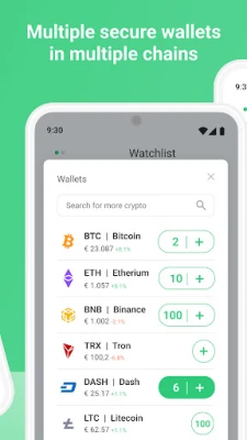 Create as many wallets for Bitcoin(BTC), Ethereum(ETH), Dogecoin (DOGE) etc. as you want. Manage your earnings and spendings with ease: you can have a special wallet for your home bills, car payments, etc. and another one for your incomes. Give your wallets self-speaking names to make it simple.