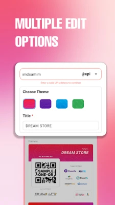 Welcome to PayQR - The ultimate UPI QR code generator designed to simplify your digital payment experience! With PayQR, creating custom QR codes becomes a delightful breeze. Express your style by choosing from a diverse array of themes, adding personalized names, and instantly generating QR codes that perfectly represent you or your business.