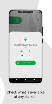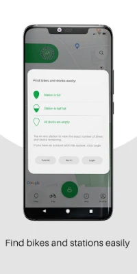 • Create a new bike share account directly in the app or login to an existing account (for systems that allows it) to be able to: