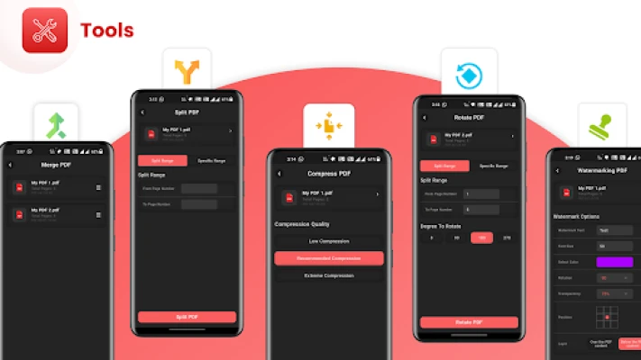 This PDF Utility Application lets you Merge, Split, Compress, Delete pages, Rotate pages, Reorder pages and Watermark PDF with ease. It’s completely free, lightweight and dedicated for Mobile, Tablet and can work offline. It will help user with their Educational, Study material, Bills, Certificates, Receipts PDFs to edit easily with this tools.