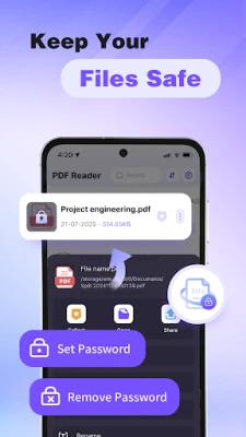 Your documents are never collected or shared. On Android 11 and above, PDF Viewer Lite only uses the required FOREGROUND_SERVICE_SPECIAL_USE permission to safely display and manage files.