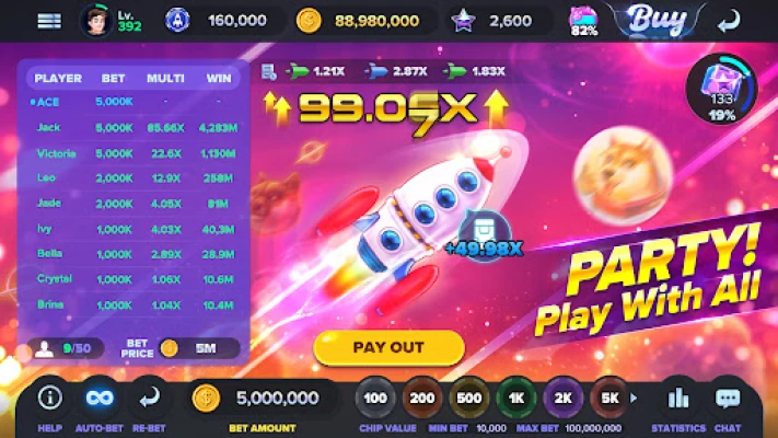 ●Party Game 1: AstroBet – 3…2…1! Tension rises as the rocket launches. You never know when it will explode, making every play thrilling. Hold your breath for the chance to win!