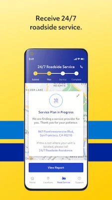 24/7 roadside service – Contact our 24/7 Roadside Assistance team, available around the clock to provide immediate support when you need it most. The app will also keep you connected with real-time information about the status of your request.