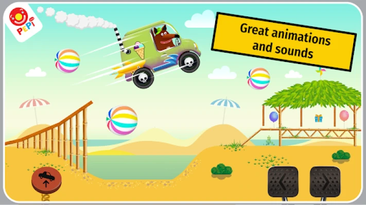 After customising an automobile in the garage, open the map and get ready for riding challenges with chosen characters! Pepi Ride offers 9 different driving courses in a colourful and different fantasy locations. Starting on a sunny beach with simple hills you’ll soon enter the forest or jungle full of stumps, tree ropes, footbridges and rocks. Every bump on the road feels unique!