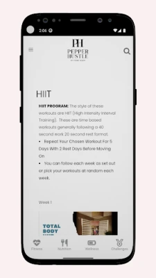Sweat at home or in the gym to our free five minute workouts or subscribe to Pepper Hustle On Demand to get access to customizable training plans, nutrition and mindfulness features all available under one seamless platform.