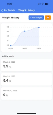 Weight Tracking β Easily record and monitor your petβs weight changes to ensure they stay in a healthy range.
