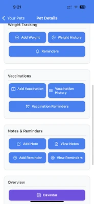 Notes & Calendar View β Keep detailed notes on your petβs health, behavior, and milestones. Visualize everything in an intuitive calendar.