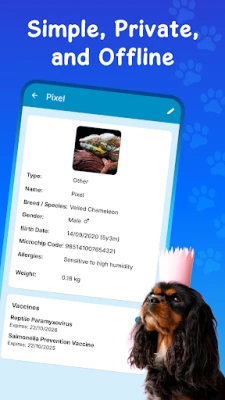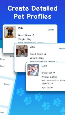 • Organize multiple pets effortlessly