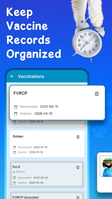 Record vaccination dates and stay organized with clear timelines for each pet.