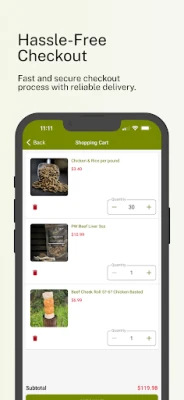 Key Features: - Shop with Ease: Effortlessly navigate through our extensive selection of pet foods, treats, supplements, and accessories. - Discover Comprehensive Product Information: Find detailed descriptions and nutritional information to make informed decisions for your pet's health and happiness. - Hassle-Free Checkout: Enjoy a smooth and secure checkout process, ensuring your orders are placed quickly and easily. Stay Updated: Receive real-time notifications about your order status, from confirmation to delivery, right on your phone.