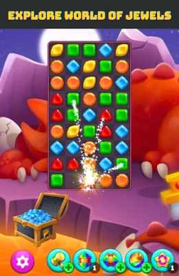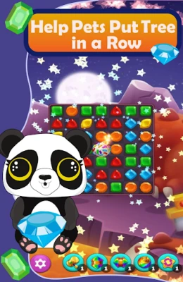 Pets : Match 3 Jewel is a puzzle game in which pets descend into the dragon's cave and must collect groups of three or more identical gems placed next to each other in a vertical or horizontal direction on the playing field.