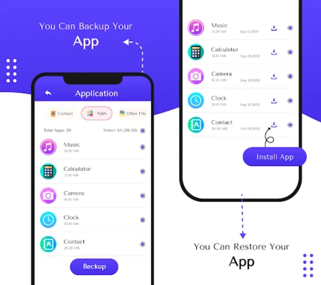 Phone Backup & Restore All application helps to backup and restore your phone on your phone storage.