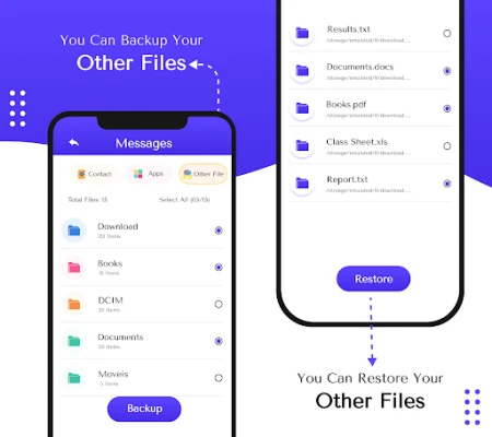 * Restore all files easily in your phone.